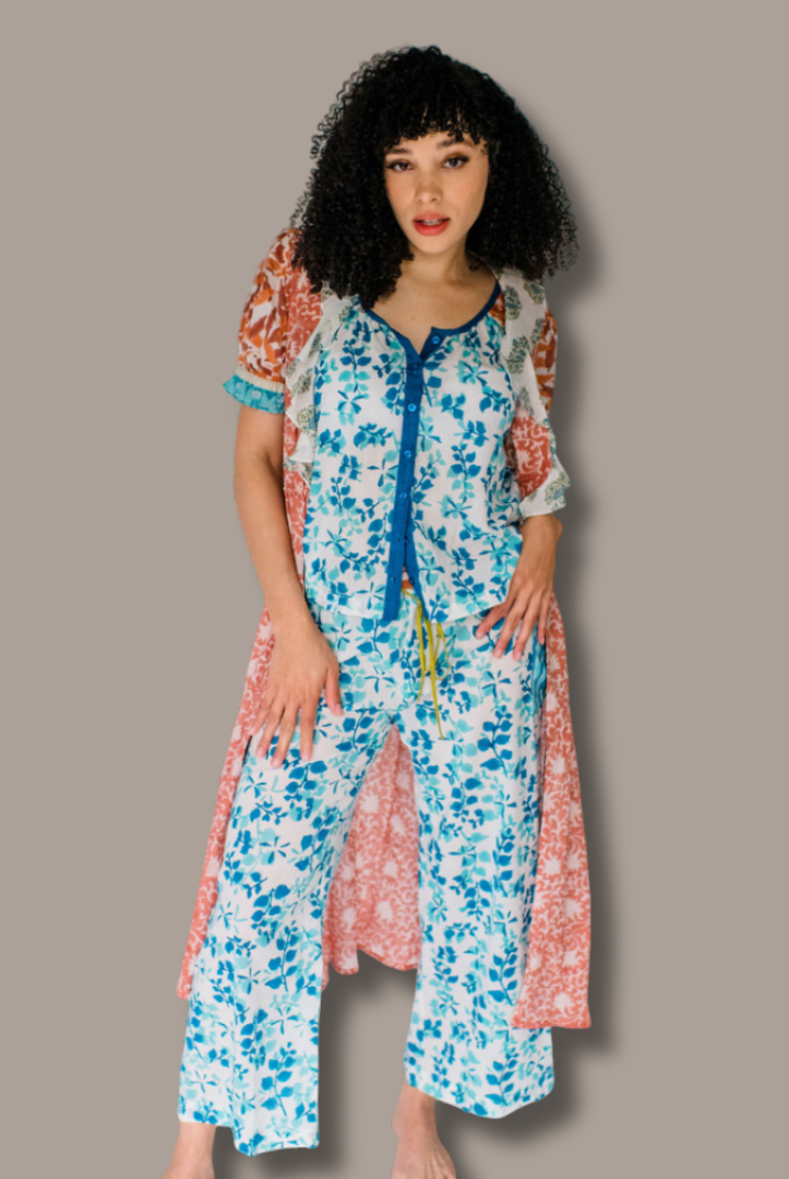 Our sleepwear collection is a testament to craftsmanship and culture. Handmade in India, each piece reflects the rich heritage of artisans who pour their skills and heritage into every stitch and print.