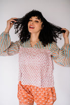 The Winnie Top by Sundara – a relaxed-fit cotton pajama top with delicate hand-block printing for effortless everyday comfort