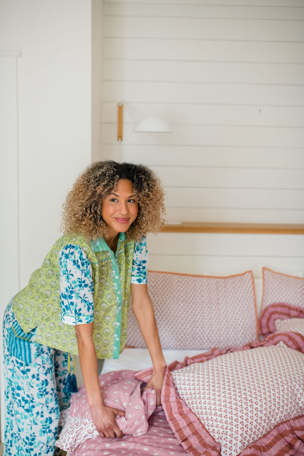 The Winnie Top by Sundara – a relaxed-fit cotton pajama top with delicate hand-block printing for effortless everyday comfort